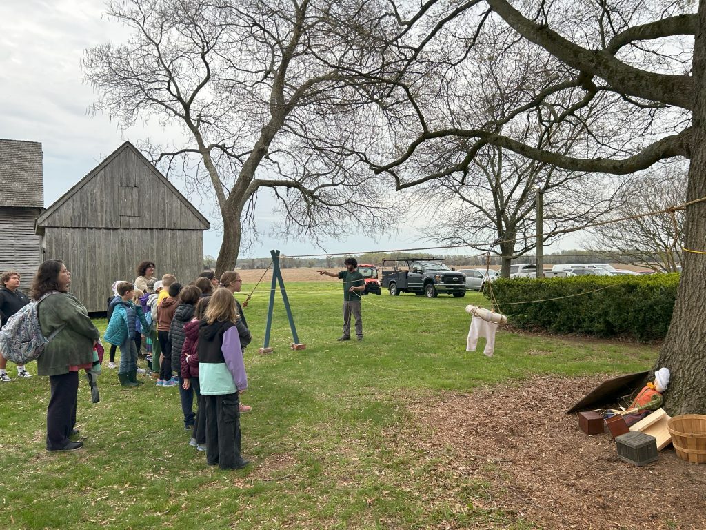 This year’s Make a Splash field trip program at John Dickinson Plantation was set to a backdrop of light rain throughout the day, perfect for the 600 visiting fourth graders and their teachers and chaperones to learn about the historical and environmental importance of water.